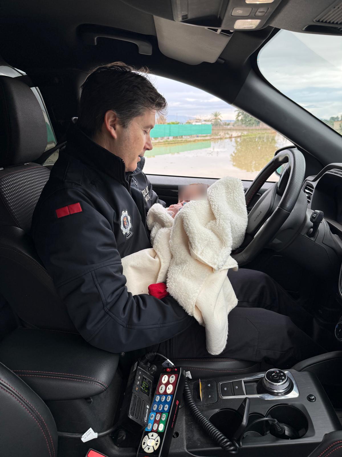 Fue entonces cuando la intervención alcanzó uno de esos momentos que definen la vocación policial. Los agentes fueron alertados de una situación límite. Una vecina había quedado atrapada en la zona junto a su bebé de apenas unos meses de vida. El agua fluía con fuerza y el margen de actuación era mínimo. Sin dudarlo, los agentes accedieron hasta ella y priorizaron la seguridad del menor, acogiéndolo en primer lugar para evitar cualquier daño mayor. Fue una maniobra precisa, firme y cargada de humanidad en uno de los instantes más delicados del servicio.