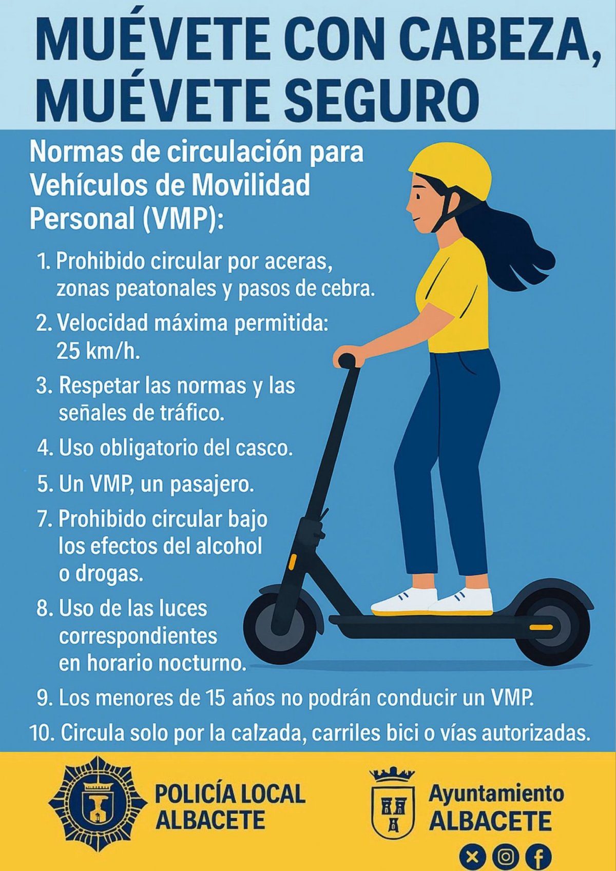Desde la Jefatura de la Policía Local de Albacete se recuerda que la ordenanza municipal y la normativa de la DGT prohíben circular con patinetes eléctricos por las aceras y obligan a cumplir las señales y las indicaciones de los agentes. También insisten en la importancia del uso del casco y en mantener los vehículos en su estado original para garantizar la seguridad vial.