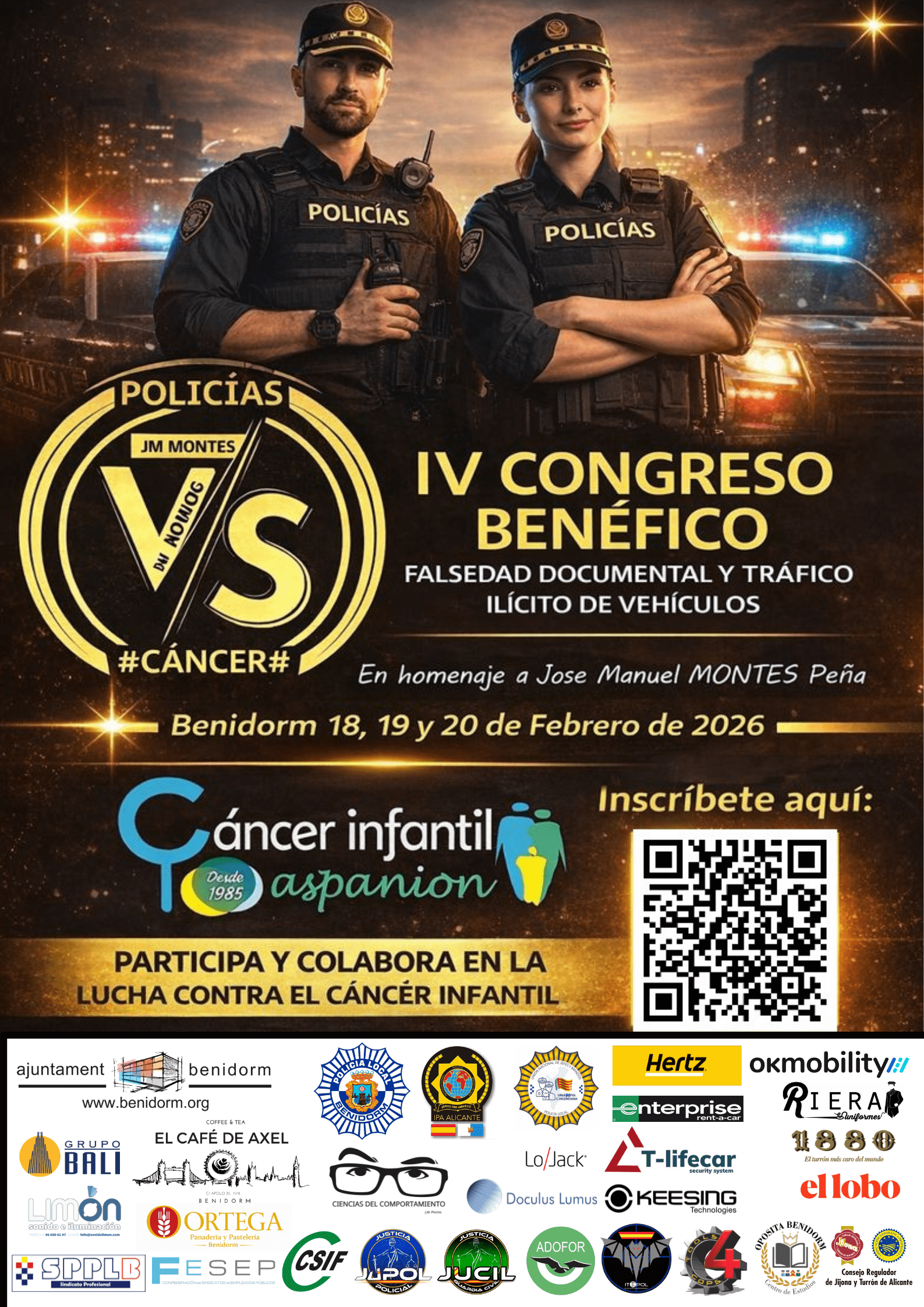 Benidorm continúa recogiendo el reconocimiento y la excelente valoración generada tras la celebración del IV Congreso benéfico de falsedad documental y tráfico ilícito de vehículos, un evento que durante los días 18, 19 y 20 de febrero de 2026 convirtió a la ciudad en punto de encuentro clave para la formación policial especializada y la solidaridad institucional. El congreso, organizado en homenaje a José Manuel Montes Peña, no solo destacó por su alto nivel técnico, sino también por su profundo componente humano, consolidándose como una cita de referencia dentro del ámbito de la seguridad pública.