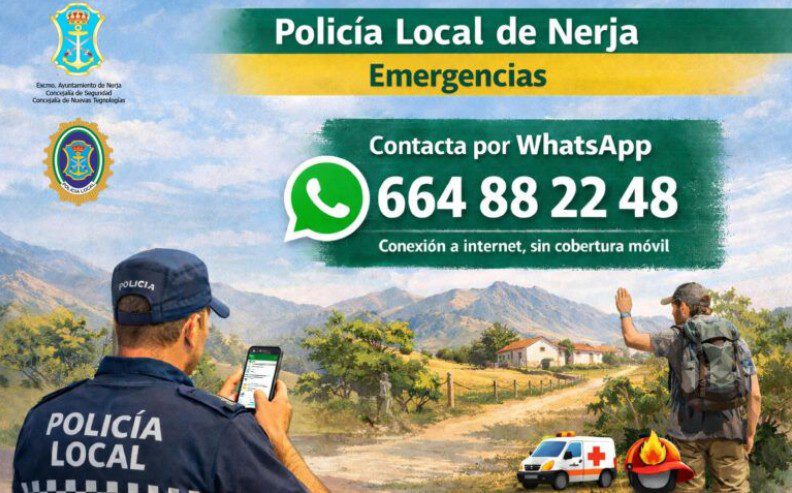 La Policía Local de Nerja ha puesto en marcha un nuevo canal de comunicación a través de WhatsApp, vinculado al número 664 88 22 48, destinado exclusivamente a la atención de situaciones de emergencia, con el objetivo de agilizar el contacto con la ciudadanía y mejorar la capacidad de respuesta policial.
