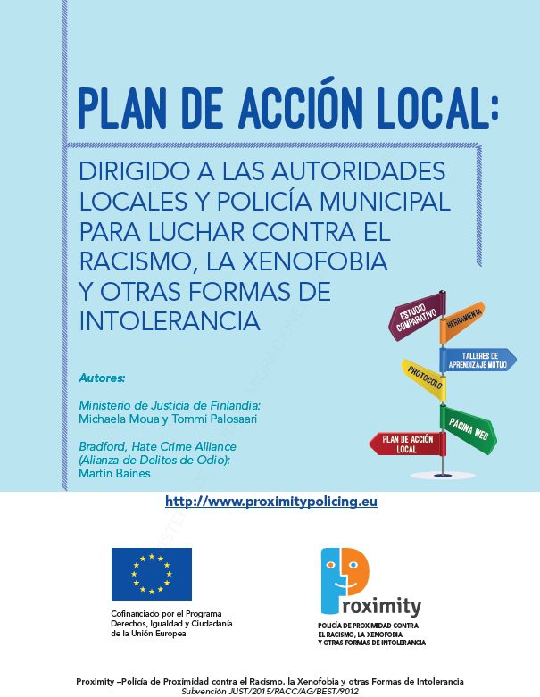El Plan de Acción está dirigido a la autoridades locales y a la Policía de Proximidad para luchar contra el racismo, la xenofobia y otras formas de intolerancia. Está enmarcado en el proyecto europeo Proximity y fue coordinado por uno de sus socios, el Ministerio de Justicia de Finlandia. El documento está disponible en sus versiones en inglés y español. Fue liderado por España y, junto a nuestro país, también participaron Finlandia, Bulgaria, Estonia, Italia, Letonia, Portugal y Reino Unido en calidad de socios.