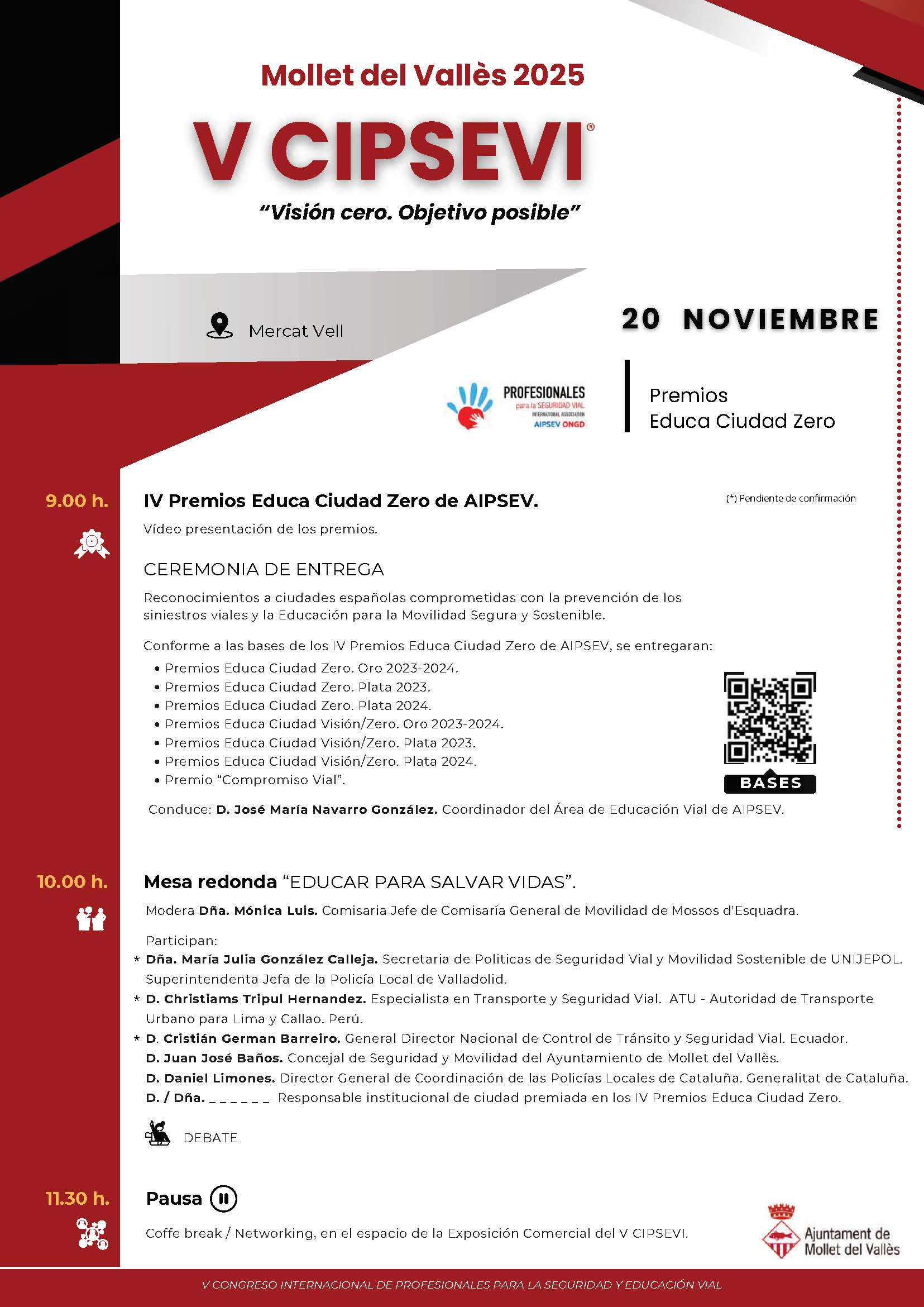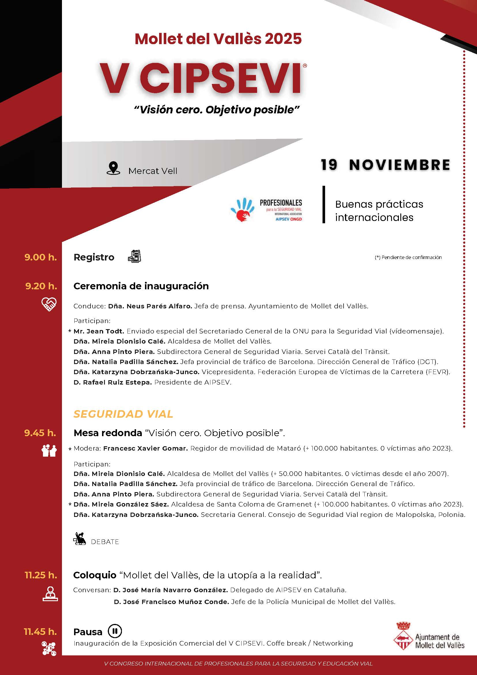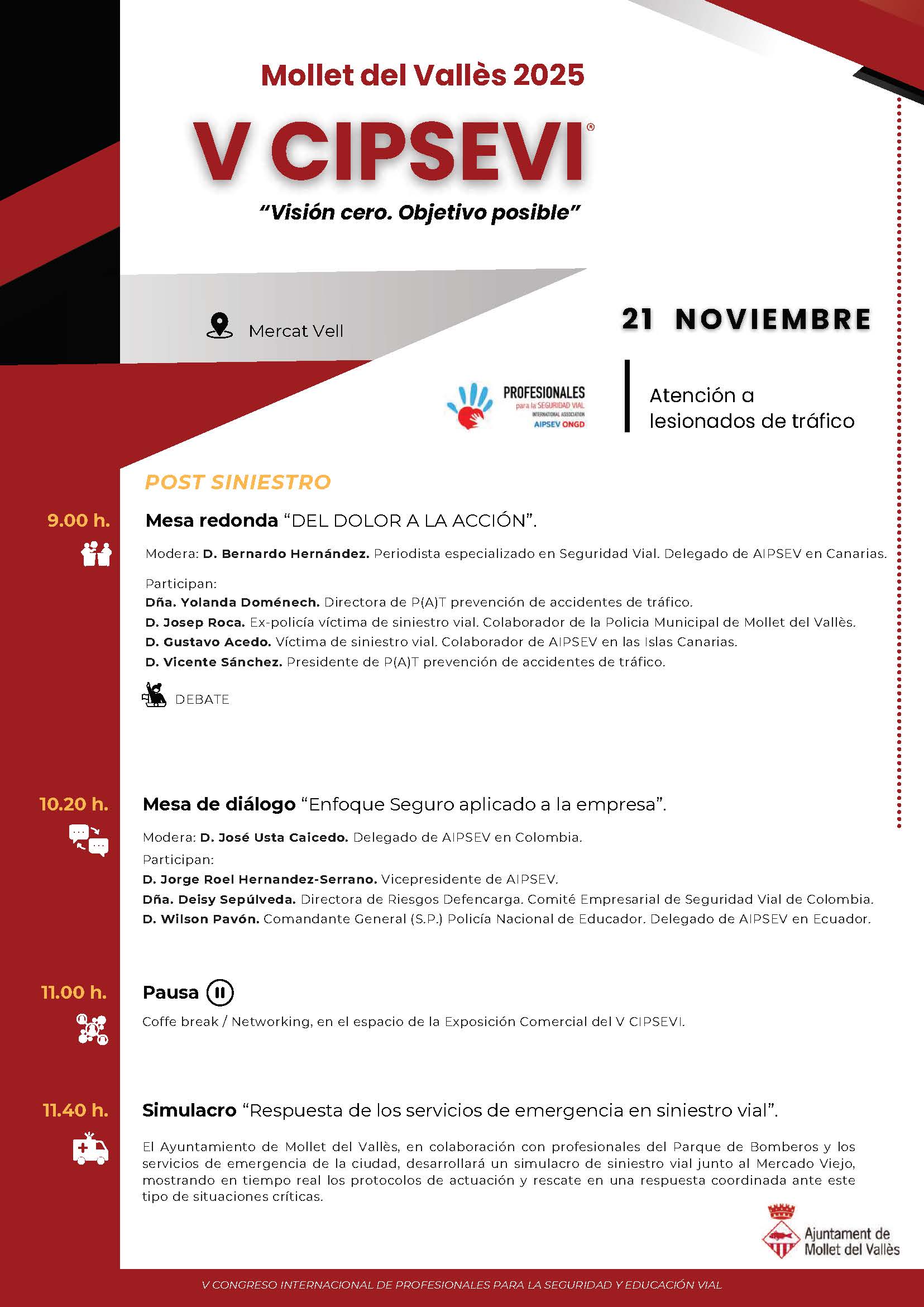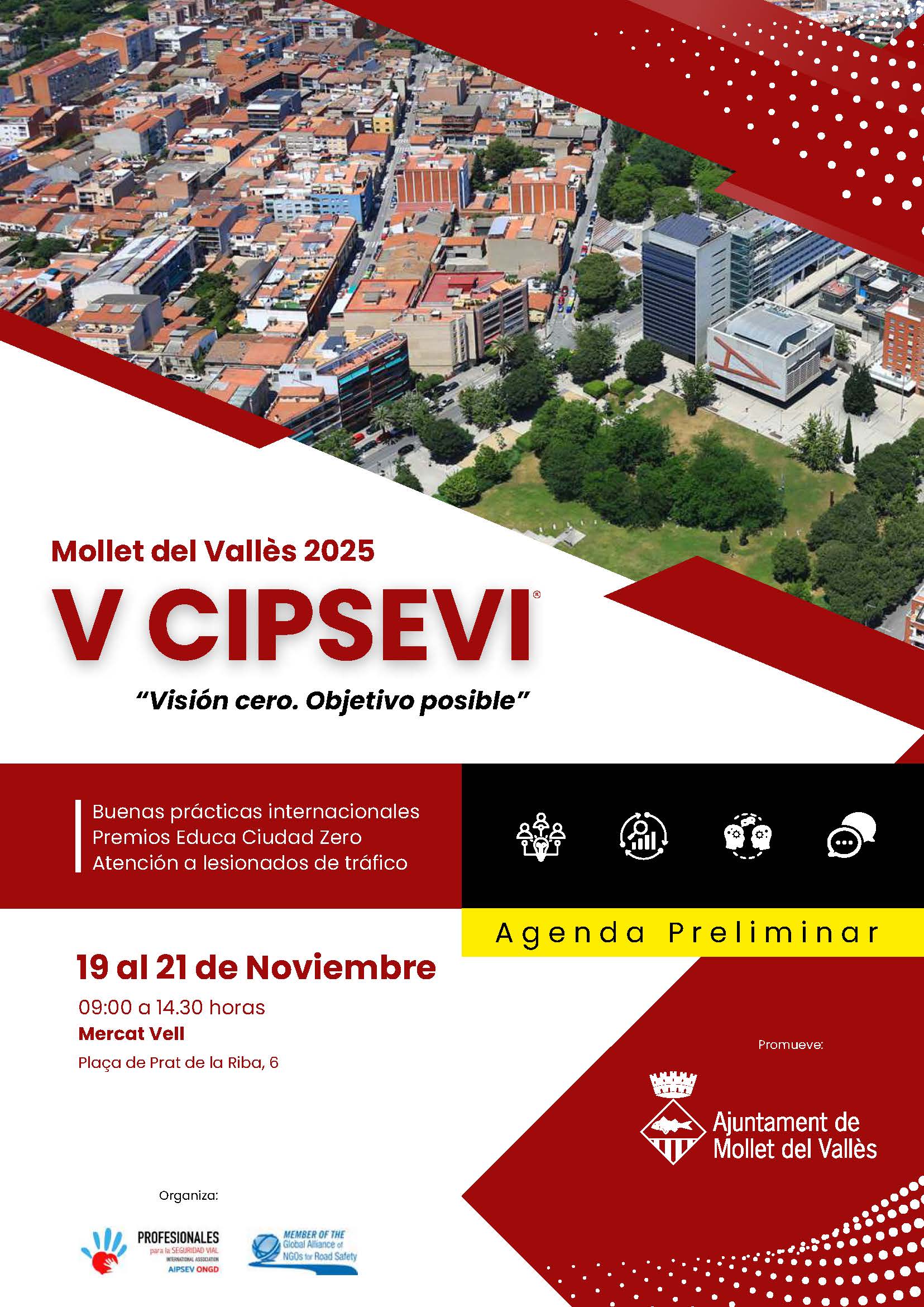 Del 19 al 21 de noviembre de 2025, Mollet del Vallès (Barcelona) se convertirá en el epicentro del debate internacional sobre seguridad vial y movilidad sostenible. La quinta edición del Congreso Internacional de Profesionales para la Seguridad y la Educación Vial (CIPSEVI) reunirá a expertos y profesionales de España, Europa, Latinoamérica y África, consolidando su papel como espacio de reflexión y acción hacia el Objetivo Visión Cero y catalizador del cambio hacia una movilidad más segura, humana y sostenible.