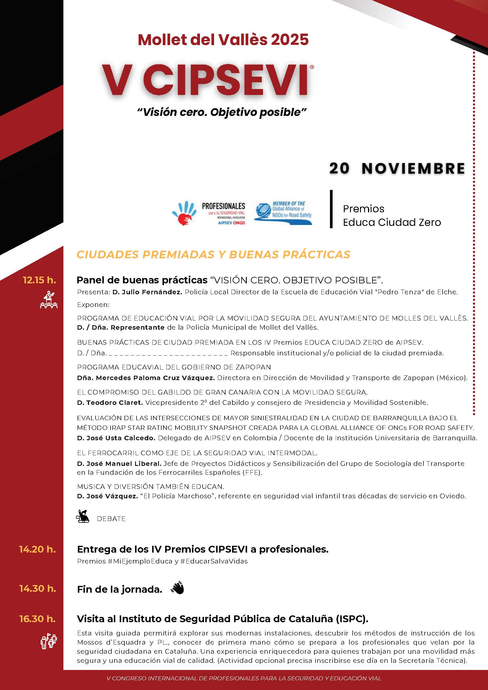 En la segunda jornada, AIPSEV reconocerá a las ciudades españolas que han apostado por la educación para la movilidad segura y sostenible como herramienta clave para la prevención de siniestros viales. Ciudades premiadas en los IV Premios Educa Ciudad Zero compartirán sus buenas prácticas, contribuyendo al aprendizaje colectivo y a la expansión de políticas viales efectivas.