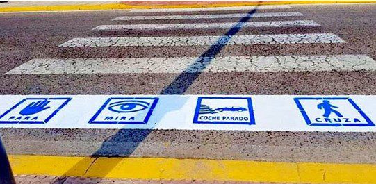 El proyecto, impulsado por la Asociación TEAVIAL, consiste en la instalación de pictogramas sobre la primera línea blanca de los pasos de peatones. Son dibujos sencillos, claros y universales, que indican acciones como “para, mira, semáforo en verde y cruza” o “para, mira, coche parado y cruza”. Un lenguaje visual directo, que ayuda a comprender mejor el entorno y a anticipar los pasos a seguir.