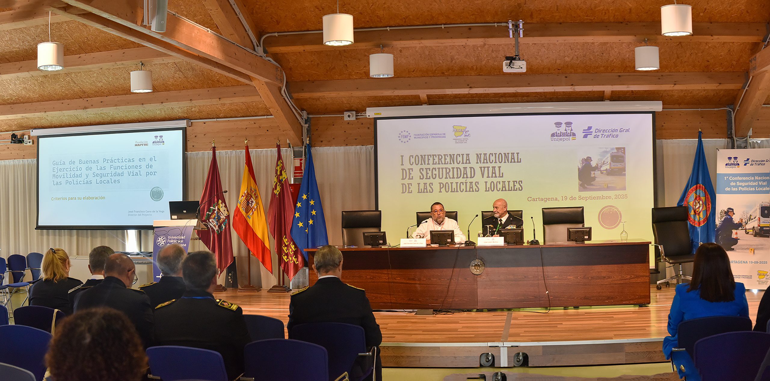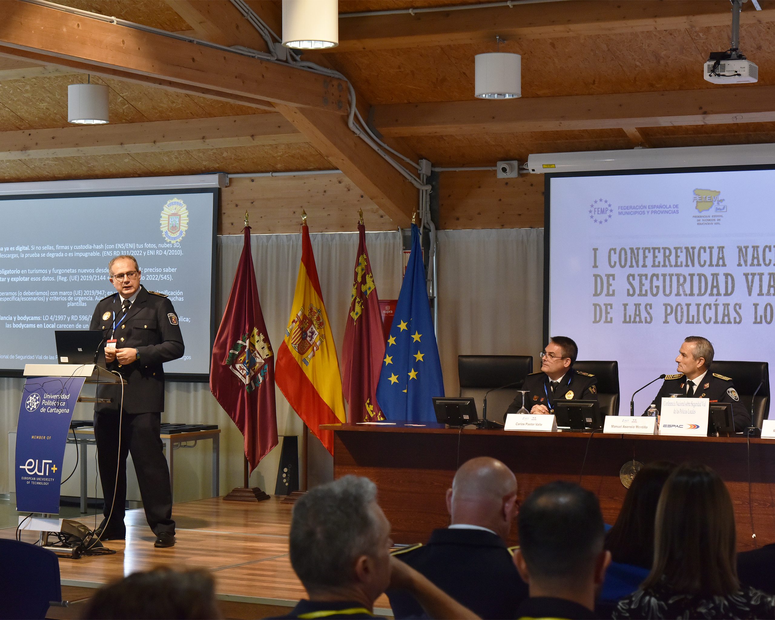 La Universidad Politécnica de Cartagena fue ayer el escenario de la I Conferencia Nacional sobre Seguridad Vial de las Policías Locales, organizada conjuntamente por Unijepol y la DGT, un evento pionero que ha reunido a responsables institucionales y policiales locales de toda España para analizar los retos actuales y futuros de la seguridad vial en el ámbito urbano. TODAS LAS FOTOGRAFÍAS AL FINALIZAR EL ARTÍCULO.