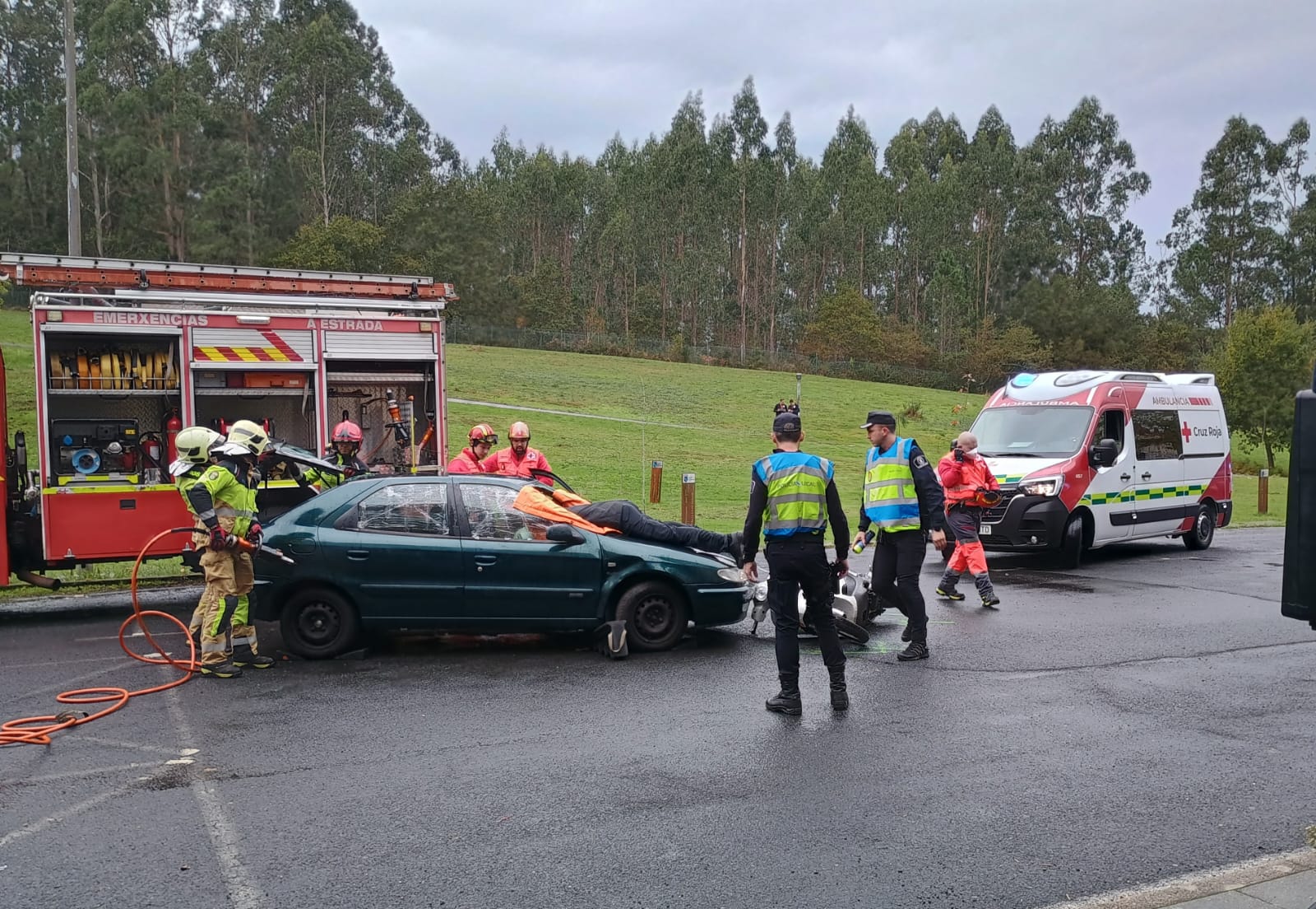 La parte más práctica consistió en la celebración de un simulacro de siniestro vial que fue posteriormente analizado por el Fiscal y los servicios de emergencias y seguridad intervinientes, con expectativa de mejora de diversos aspectos de coordinación entre estos, y resultando de gran interés para todos los asistentes.
