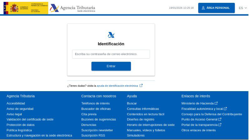 Tras introducir los datos solicitados, la web redirige a la página legítima de la Agencia Tributaria, pero los ciberdelincuentes ya estarán en posesión de las credenciales de la víctima.