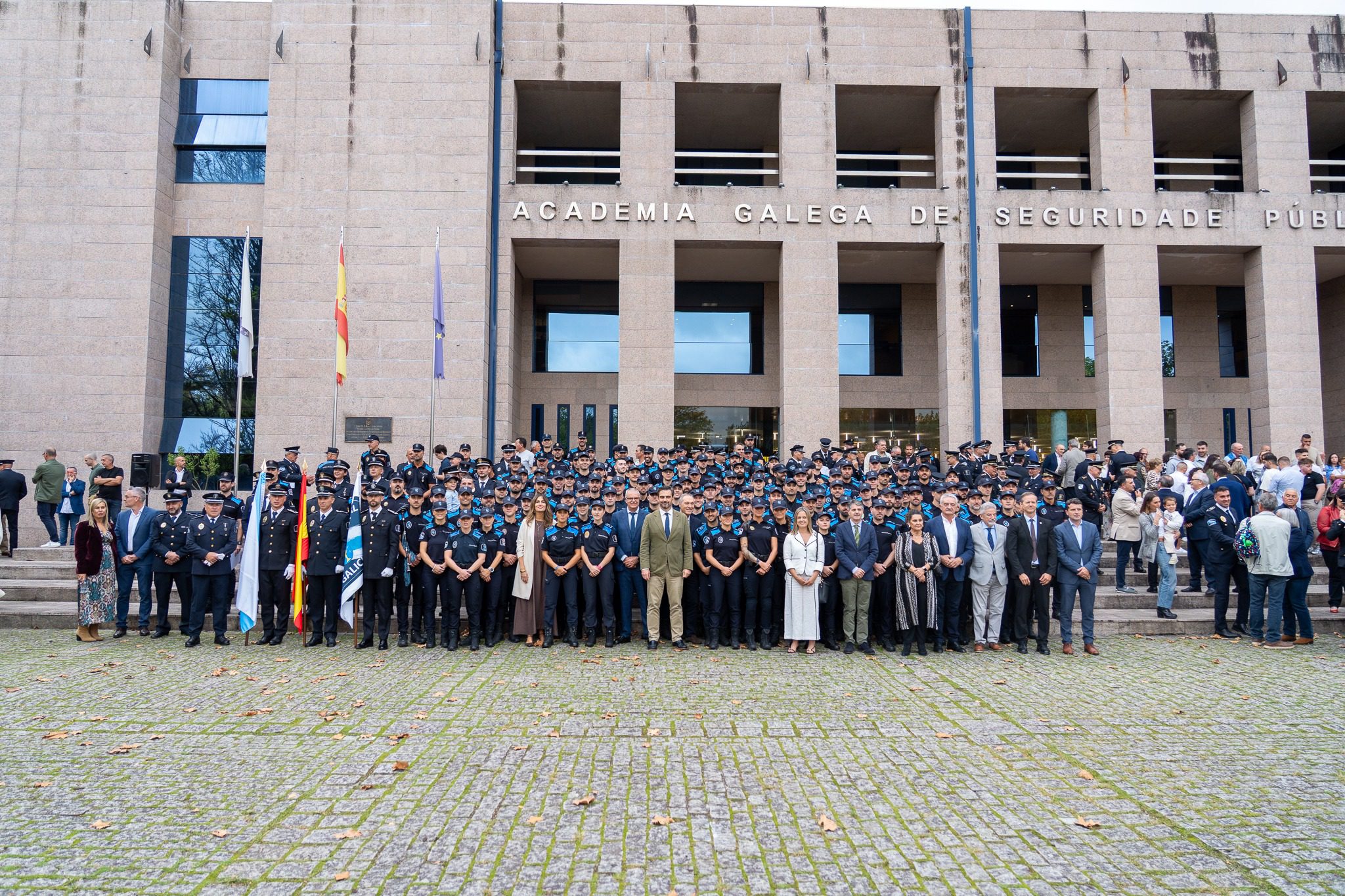 El conselleiro de Presidencia, Xustiza e Deportes, Diego Calvo, participó el viernes pasado en la Academia Galega de Seguridade Pública (Agasp) en el acto de despedida de la 17.ª promoción de Policía Local, integrada por 92 nuevos agentes, y de los 31 de la 11.ª promoción de la categoría de oficiales. En el mismo evento también se entregaron las medallas al mérito de la Policía Local y los distintivos de permanencia por 25 años de servicio.