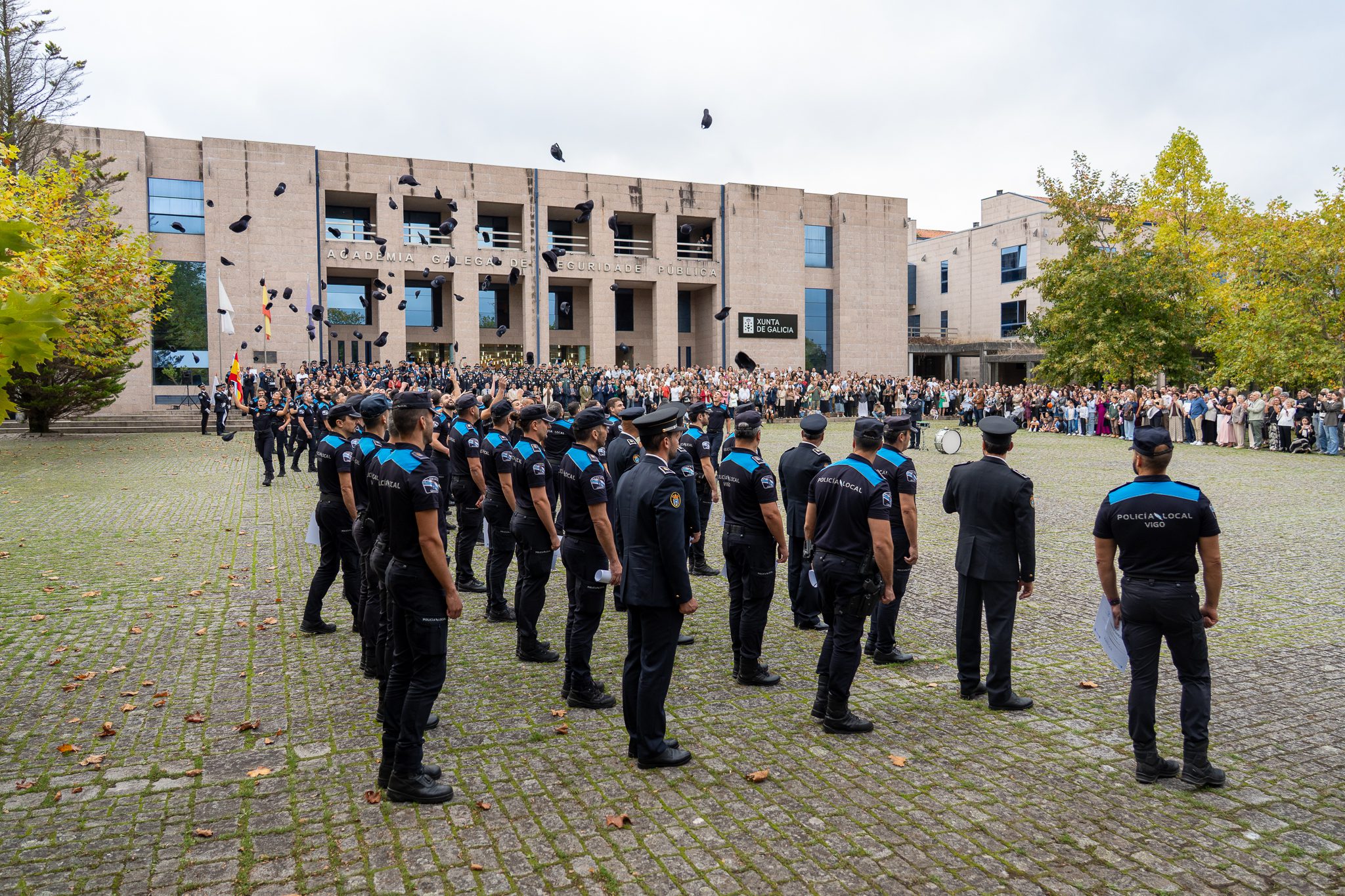 En su intervención, el conselleiro puso en valor el papel de la Policía Local para garantizar la seguridad de la ciudadanía en la comunidad y destacó que se trata de uno de los cuerpos más cercanos a la vecindad y de una profesión en la que son fundamentales la vocación y «mantener la ilusión”. En cuanto a las promociones graduadas, recordó los valores que aprendieron en la Agasp, como el compañerismo o la disciplina, gracias al trabajo de los docentes para inculcarlos, e incidió en que durante estos meses la Academia se convirtió en su “segunda casa”, donde formaron “una gran familia”. Diego Calvo también se refirió a la importancia del apoyo de las familias a los agentes en su camino para ejercer su profesión.