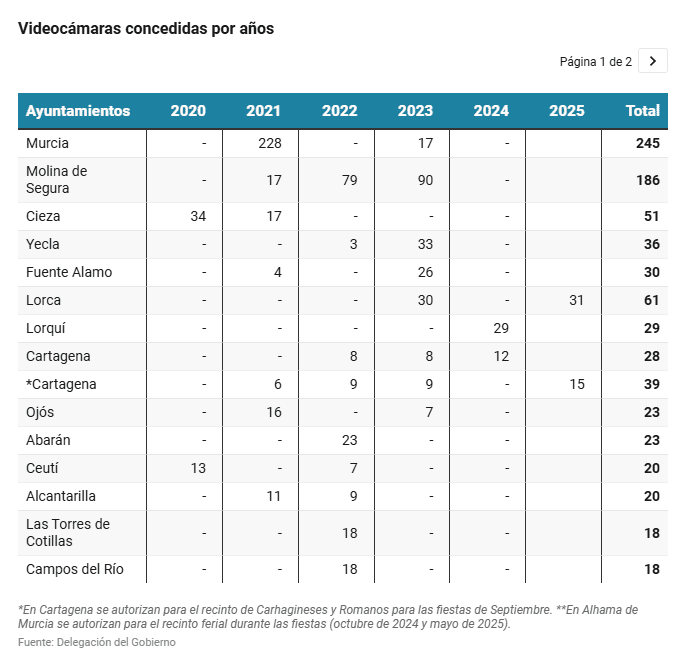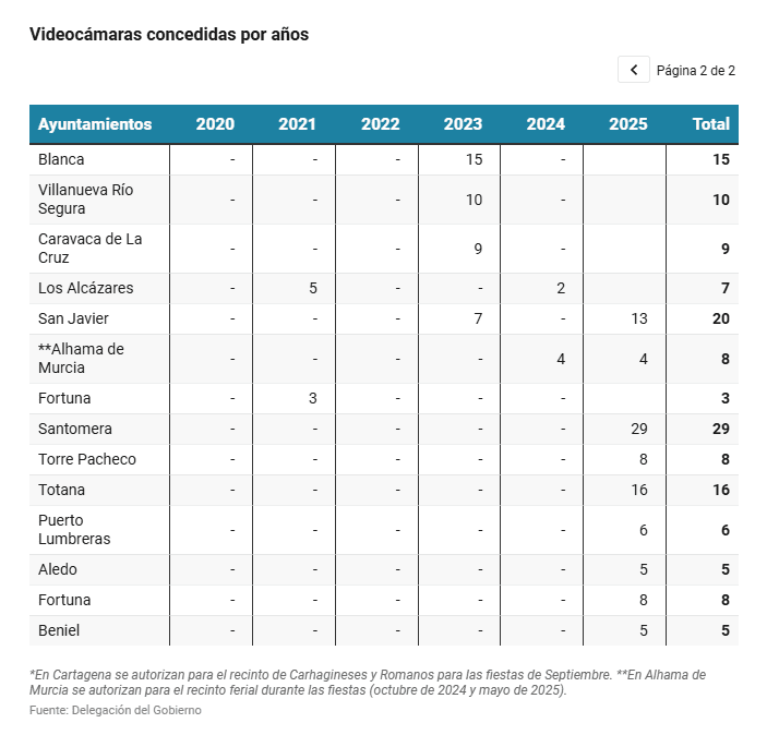 Un caso ejemplar es el de Beniel, donde la alcaldesa Mari Carmen Morales aprobó en 2024 una partida de 70.000 euros para el arranque del sistema y la instalación de las primeras cinco cámaras. Recientemente, el municipio recibió autorización para ampliar el número de dispositivos, con prioridad en la seguridad en la vía pública.