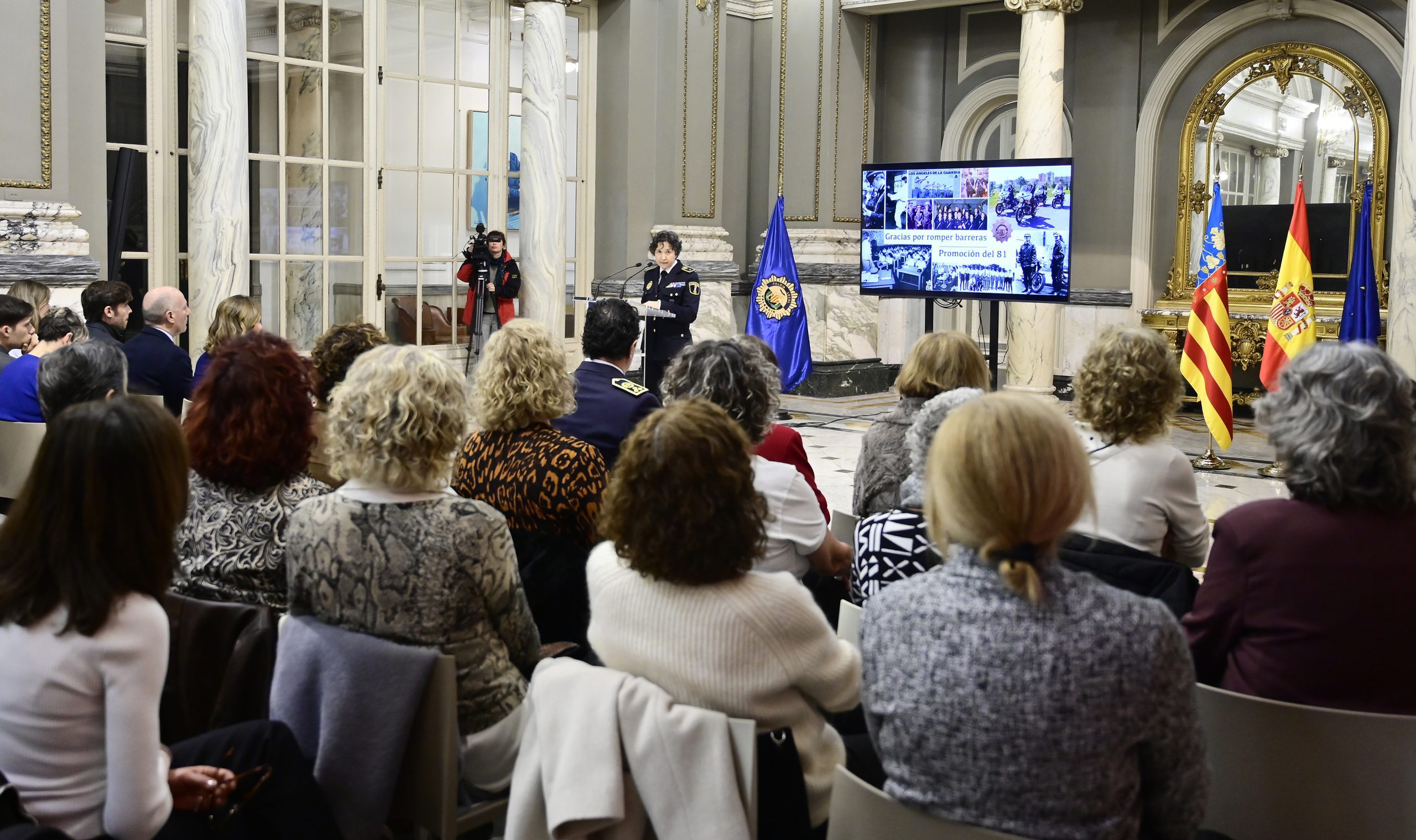 El homenaje sirvió también para recordar uno a uno los nombres de aquellas pioneras que cambiaron para siempre la historia del cuerpo. El consistorio reconoció la trayectoria de la comisaria principal jubilada Carmen Mariblanca junto a Isabel Rodríguez, Ana Odena, Mari Carmen Penadés, Maite Montesinos, Rosa Marina Julián, María Isabel Caballero, María José Rodrigo, Lydia López, Mónica Trujillano, Olga Sanz, Isabel Manzano, Amparo Ciurana, Vicenta Llúsar, Nieves Calvo, Mari Cruz Castilla, Carmen Calvo, Concha Ibáñez, Pilar Belchí, Francisca Miquel, Cándida Barroso, Lourdes Aguilar, Montserrat Roig, Amparo Lledó, Yolanda Suárez, Amparo Aguado y Belén Hernández, junto al recuerdo emocionado de dos compañeras ya fallecidas, Amelia Cabrelles y Juana Barri.